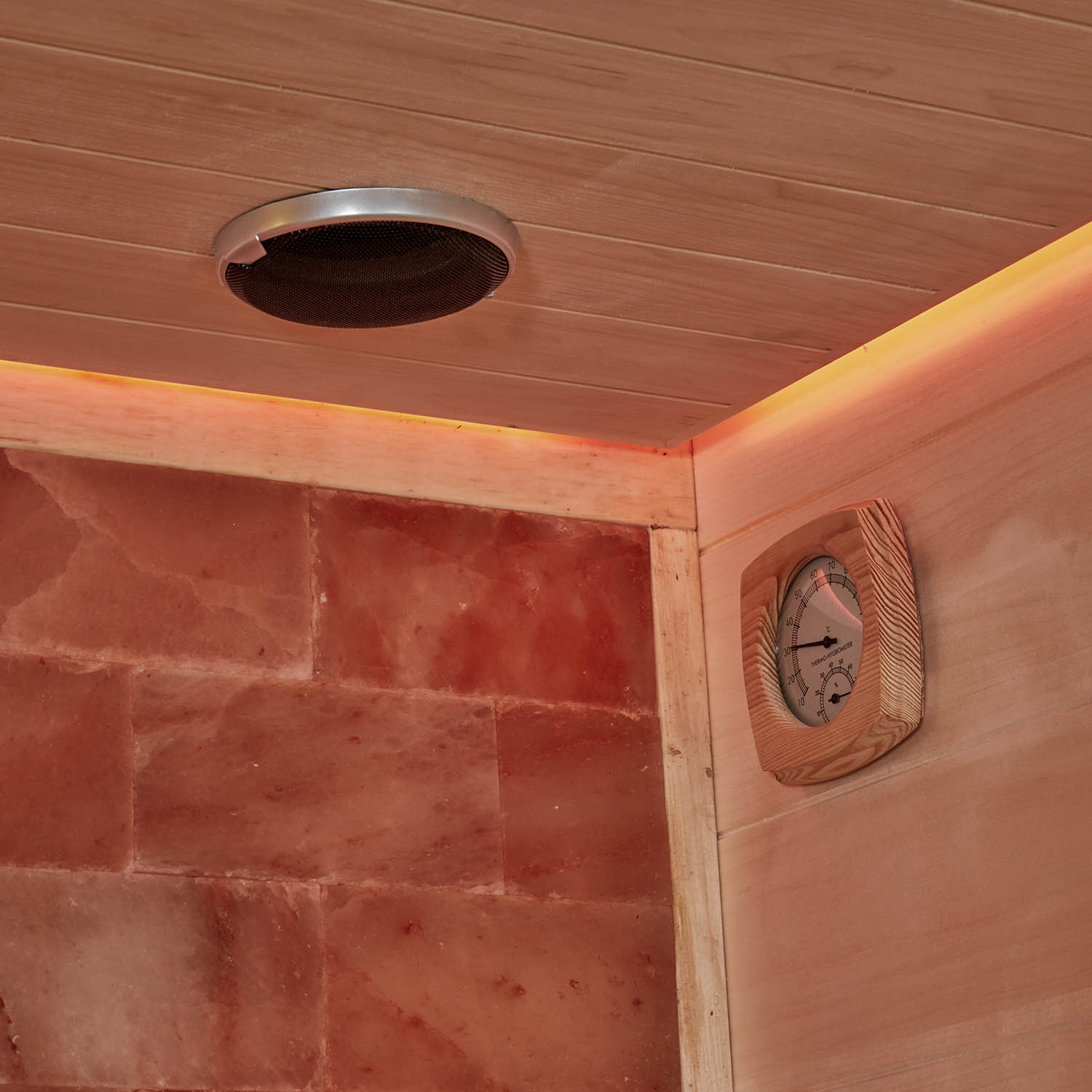 Внутри сауны используется светодиодное освещение. Цвет можно изменить на красный, зеленый, синий и градиент.