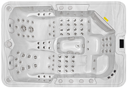 Для каждого места массажные форсунки установлены в индивидуальном порядке, благодаря чему осуществляется воздействие на разные проблемные зоны шеи, спины, икр ног. В конструкции бассейна предусмотрено 33 водных форсунки, их дополняет 10 воздушных форсунок. Силу потока воды каждый пользователь может регулировать для своего места индивидуально.