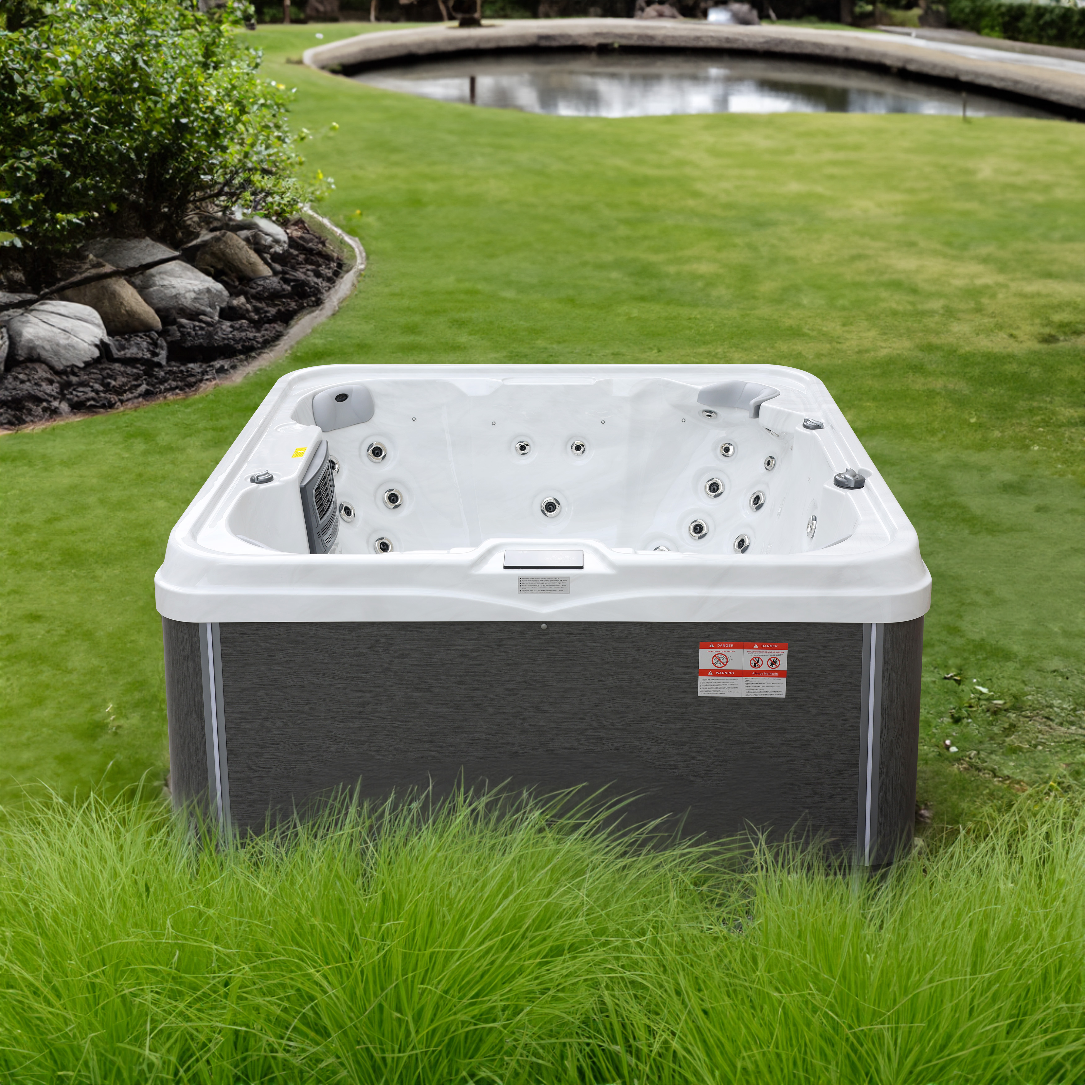 NordicSpa Sif с размером чаши 2,0 x 2,0 м идеально подходит для установки как в помещении, так и на улице. Просторная квадратная чаша с четырьмя эргономичными подголовниками комфортно вмещает до семи человек, создавая условия для полноценного отдыха и общения.